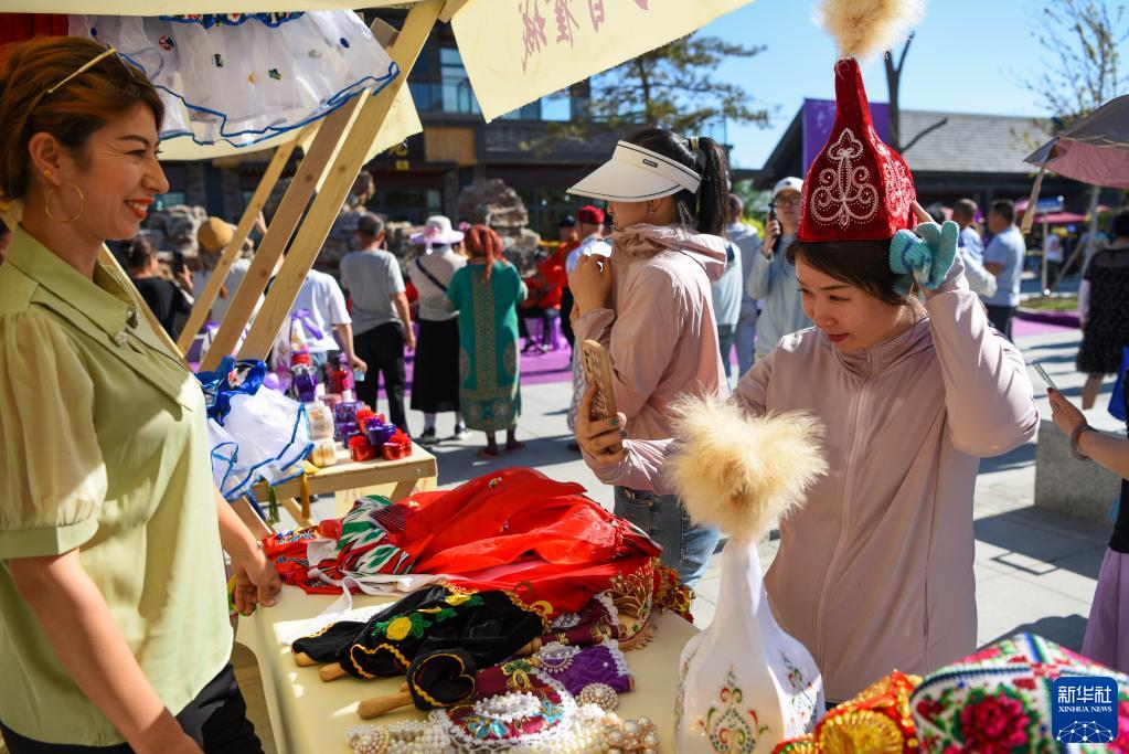 在新疆霍城縣惠遠古城,游客選購特色產(chǎn)品(6月16日攝)。