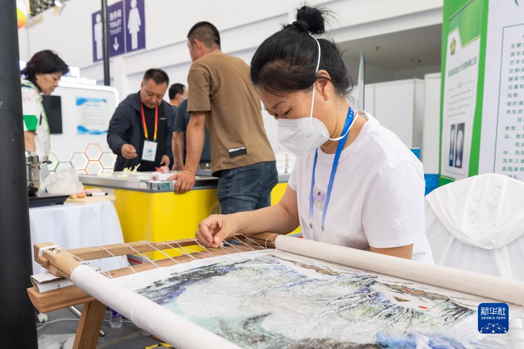 6月17日,在黑龍江省殘疾人聯(lián)合會(huì )展區,工作人員在進(jìn)行滿(mǎn)族刺繡創(chuàng )作。