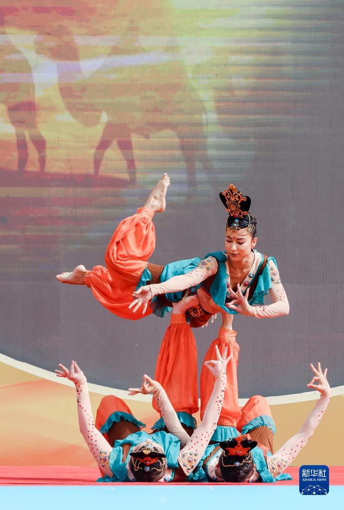 6月17日,舞蹈演員在第十九屆多浪龜茲文化旅游節開(kāi)幕式上表演舞蹈《絲路夢(mèng)幻》。