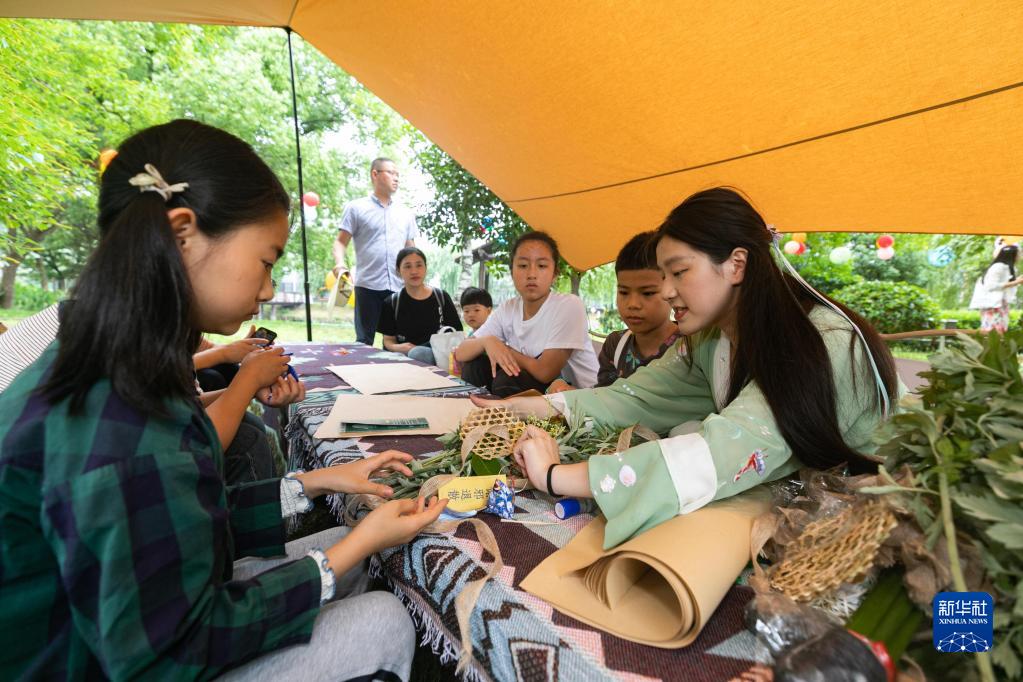 6月17日,孩子們在學(xué)習做香囊。