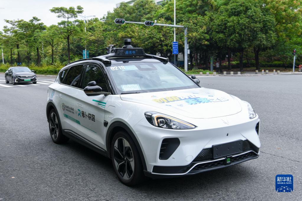 蘿卜快跑無(wú)人駕駛車(chē)輛行駛在深圳市坪山區的道路上(6月15日攝)。