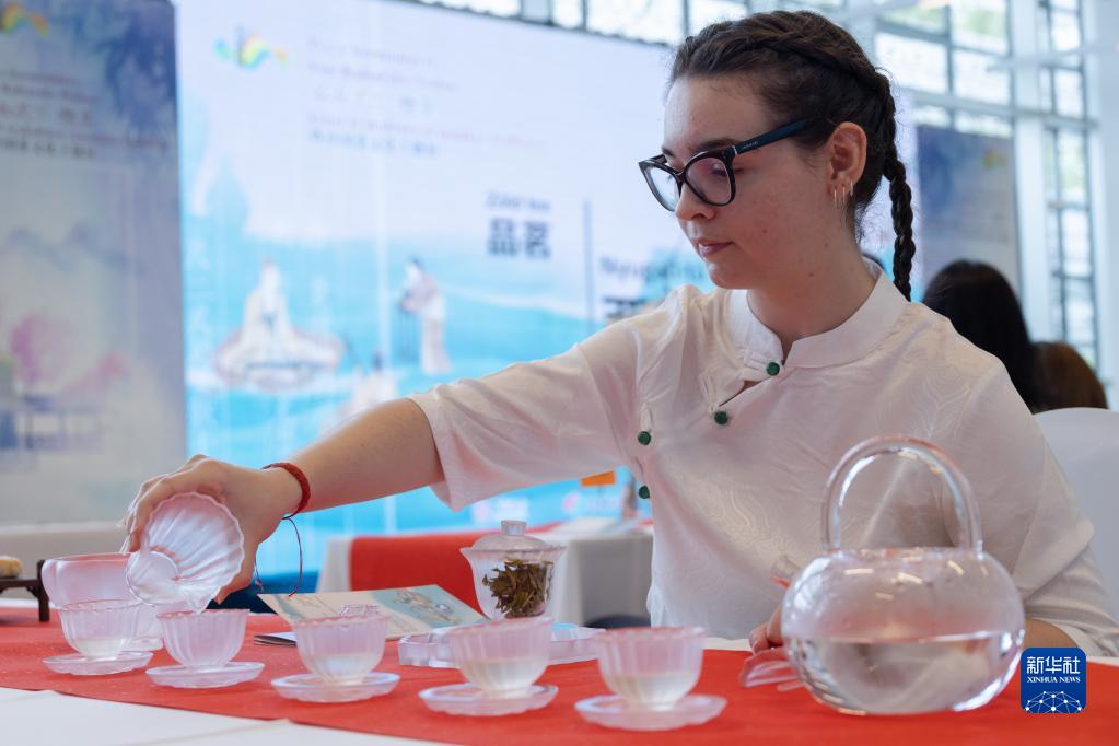 6月16日,一名匈牙利學(xué)生在布達佩斯舉行的“茶和天下·雅集”暨中國茶文化主題展上展示茶葉沖泡技藝。