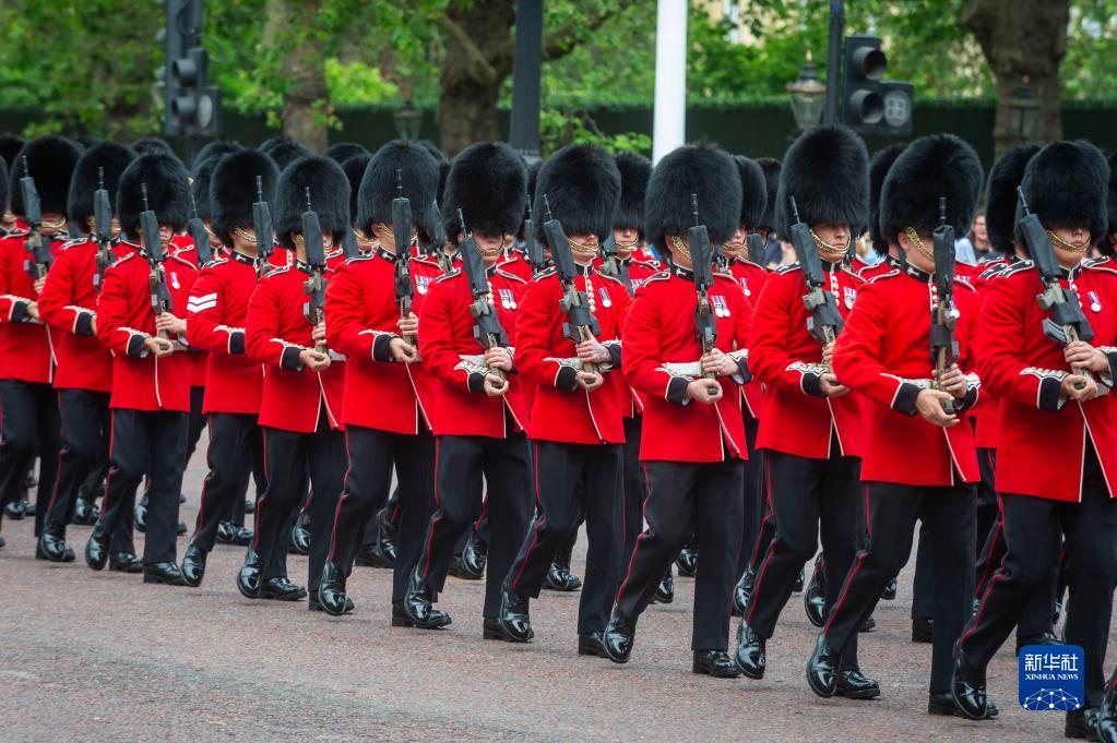 6月17日,在英國倫敦舉行的皇家閱兵式上,英國皇家衛隊士兵列隊行進(jìn)。