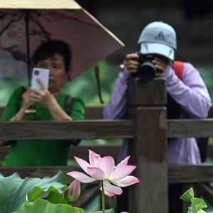 連日來(lái),廣西南寧南湖公園荷花盛開(kāi),吸引眾多市民和游客前來(lái)觀(guān)賞。