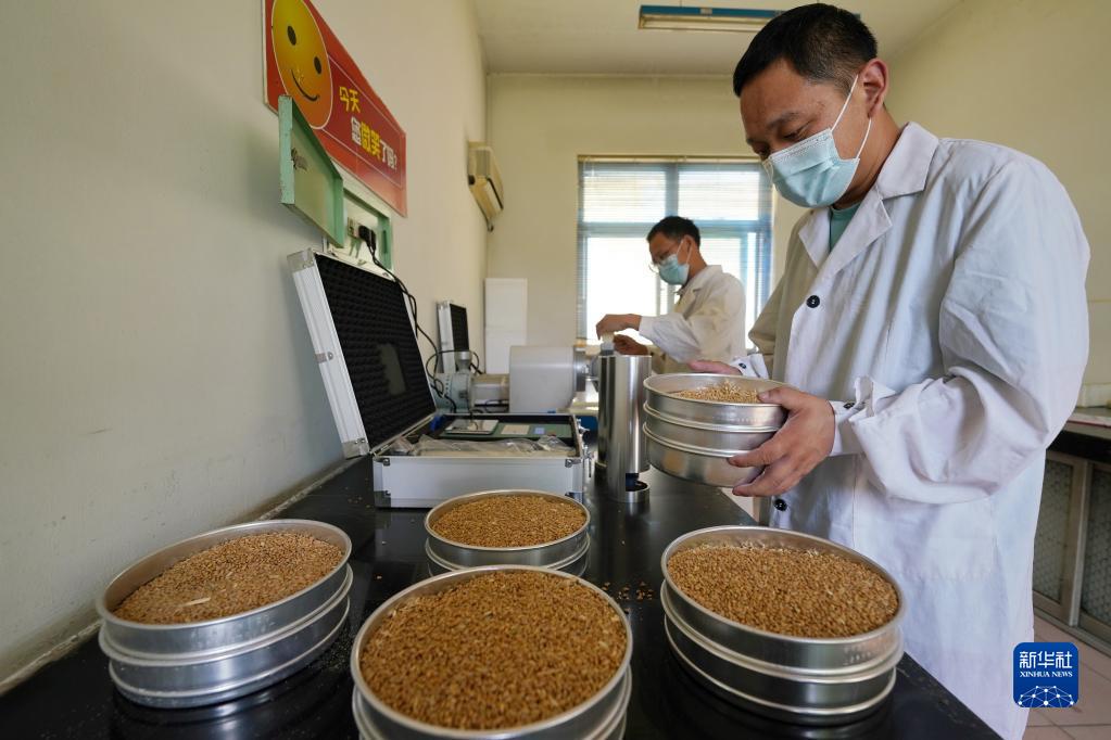 6月18日,在位于柏鄉縣的河北柏糧糧食儲備集團有限公司,工作人員在檢測小麥質(zhì)量。