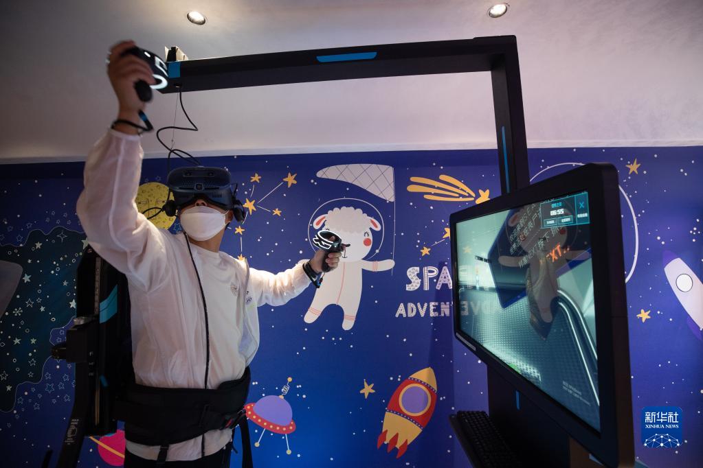 6月18日,在“林都號”旅游列車(chē)兒童游樂(lè )室內,乘客體驗游戲設備。
