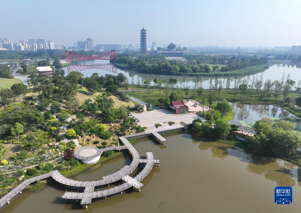 揚州運河三灣風(fēng)景區景色(6月15日攝,無(wú)人機照片)。