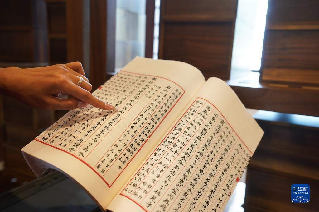 工作人員在揚州文匯閣內展示《四庫全書(shū)》(6月15日攝)。