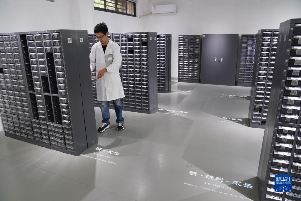 在景德鎮御窯博物院,工作人員在古陶瓷基因庫里工作(5月16日攝)。
