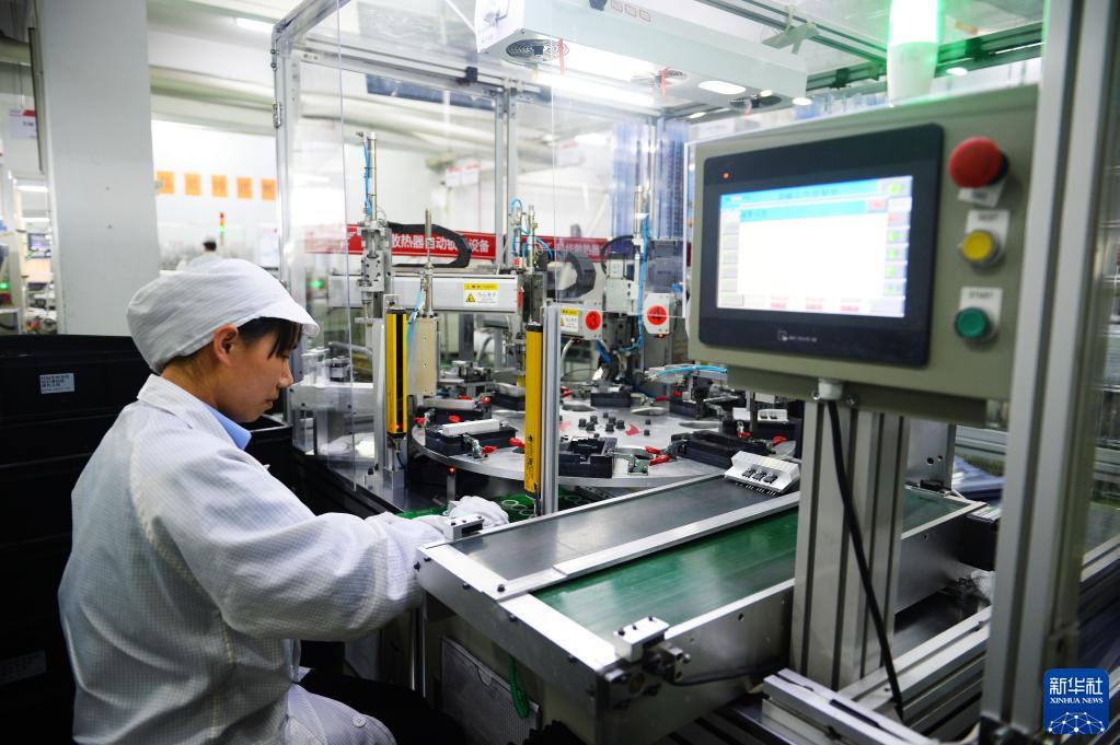 6月19日,漳州科華電氣技術(shù)有限公司工作人員在智能化車(chē)間生產(chǎn)電路板設備。