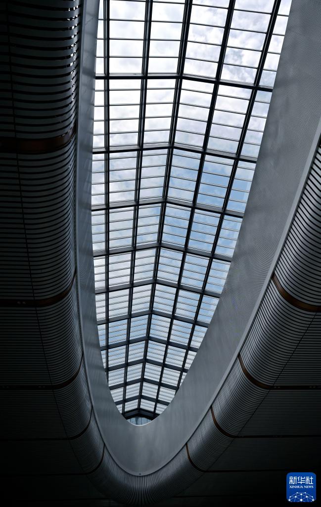 福廈高鐵新建廈門(mén)北站中心屋面安裝了全國高鐵站房光能利用率最高的智能光纖系統(6月19日攝)。