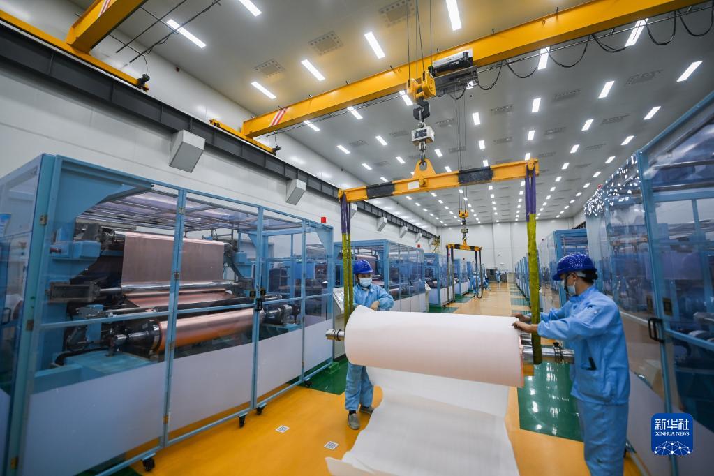 6月19日,在位于東陽(yáng)市南馬鎮花園村的浙江花園新能源股份有限公司生產(chǎn)車(chē)間,工人在生產(chǎn)高性能銅箔產(chǎn)品。