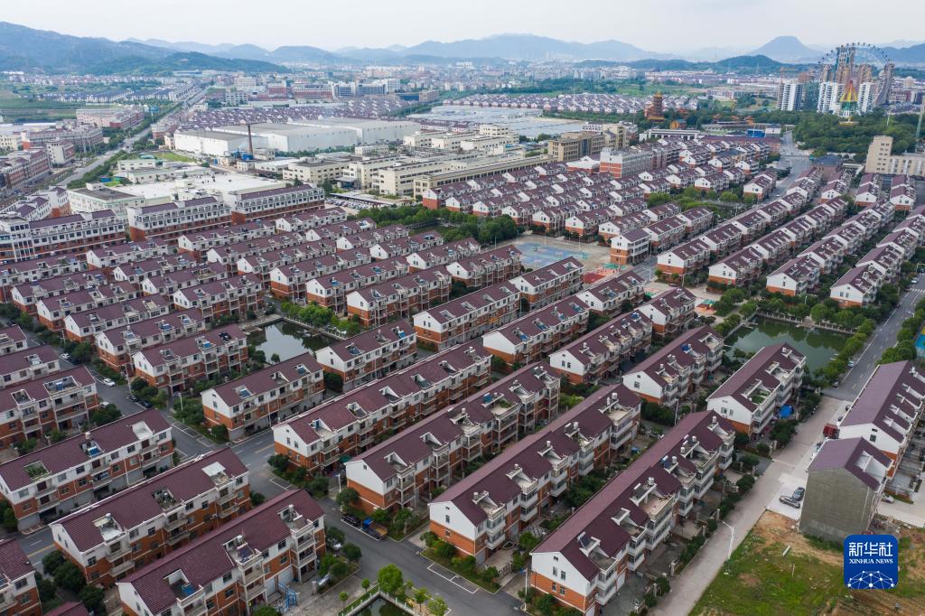 6月19日拍攝的花園村農民新居(無(wú)人機照片)。