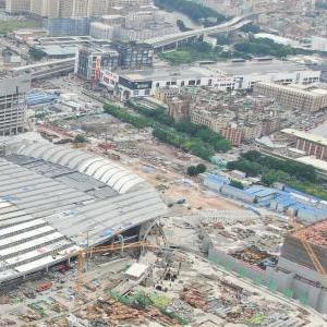 這是6月19日拍攝的建設中的廣州白云火車(chē)站(無(wú)人機照片)。