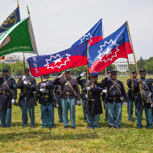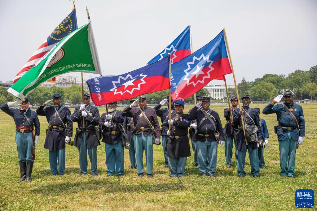 6月19日,在美國首都華盛頓的白宮附近,人們扮演成南北戰爭時(shí)期的士兵,紀念黑奴解放日。