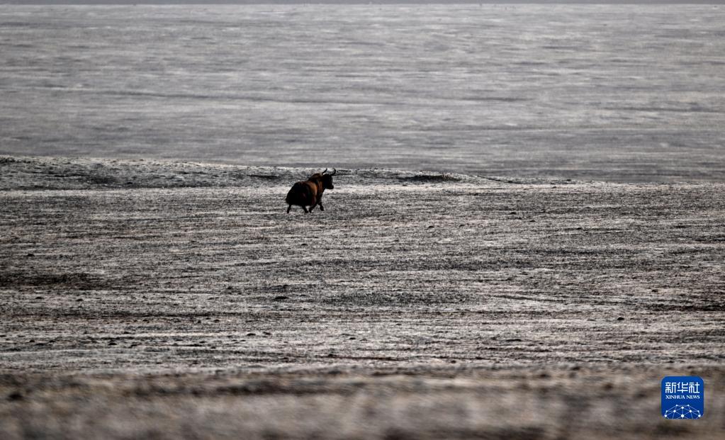 一頭野牦牛在可可西里卓乃湖區域活動(dòng)(6月18日攝)。