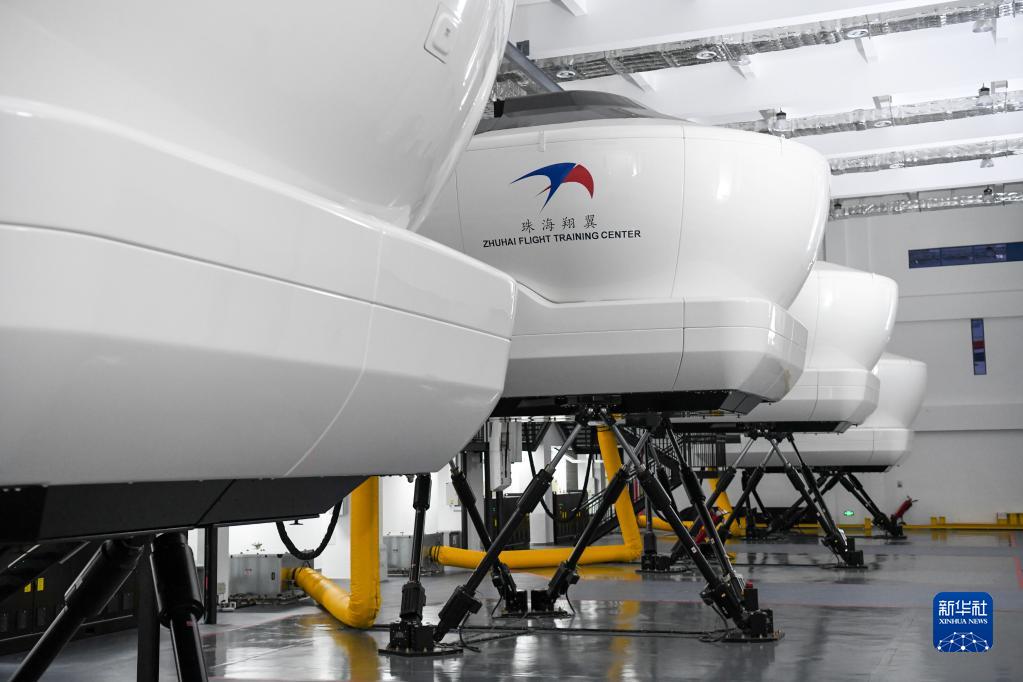 在廣東珠海翔翼飛行訓練中心,多臺飛行模擬機正在開(kāi)展訓練(6月13日攝)。