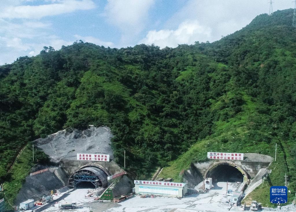 6月20日拍攝的位于深汕特別合作區的深汕西高速改擴建項目城仔山隧道出口(無(wú)人機照片)。