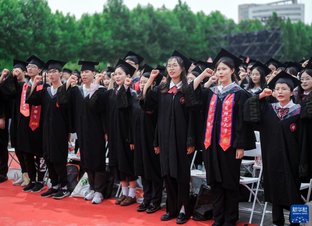 6月20日,在華東師范大學(xué)2023屆畢業(yè)典禮上,師范類(lèi)專(zhuān)業(yè)畢業(yè)生進(jìn)行未來(lái)教師宣誓。