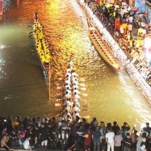 端午來(lái)臨,福建省福州市長(cháng)樂(lè )區三溪村獨有的龍舟夜渡迎端午活動(dòng)如約而至。夜幕降臨,華燈初上,隨著(zhù)鼓聲響起,數十條龍舟陸續出現在古村的小溪中,清澈的水面上船槳翻飛、龍舟飛馳,夾岸觀(guān)眾人頭攢動(dòng),加油吶喊不絕于耳,一派熱鬧景象。夜賽龍舟習俗在三溪村已經(jīng)沿襲600多年,每年端午節前后,村里的男女老少都會(huì )相聚一起夜競龍舟,借此祈盼風(fēng)調雨順、平安健康。