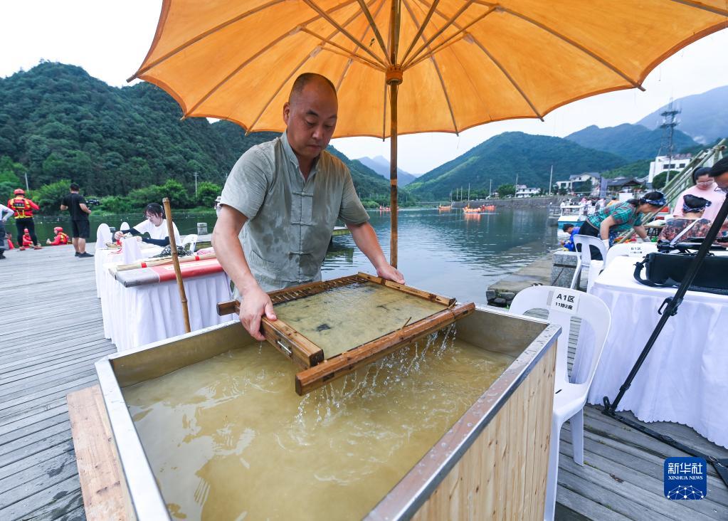 6月21日,在端午文化活動(dòng)現場(chǎng),工作人員在展示傳統元書(shū)紙的制作技藝。