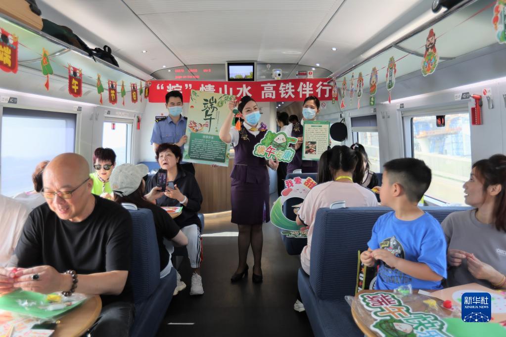 端午節前夕,鐵路上??瓦\段在列車(chē)上邀請旅客參加端午民俗活動(dòng),迎接端午佳節。