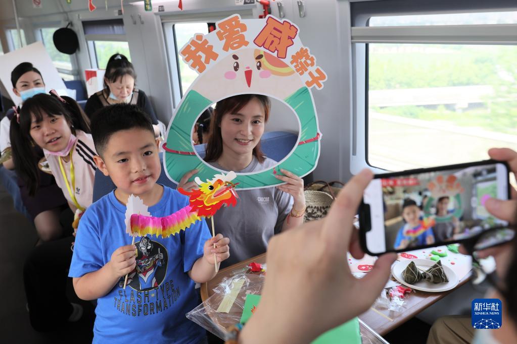 端午節前夕,鐵路上??瓦\段在列車(chē)上邀請旅客參加端午民俗活動(dòng),迎接端午佳節。