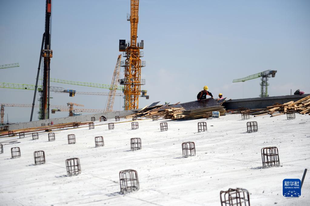 6月21日,中建三局工人在廈門(mén)翔安機場(chǎng)指廊工程項目建設工地施工。該項目已進(jìn)入封頂沖刺階段。