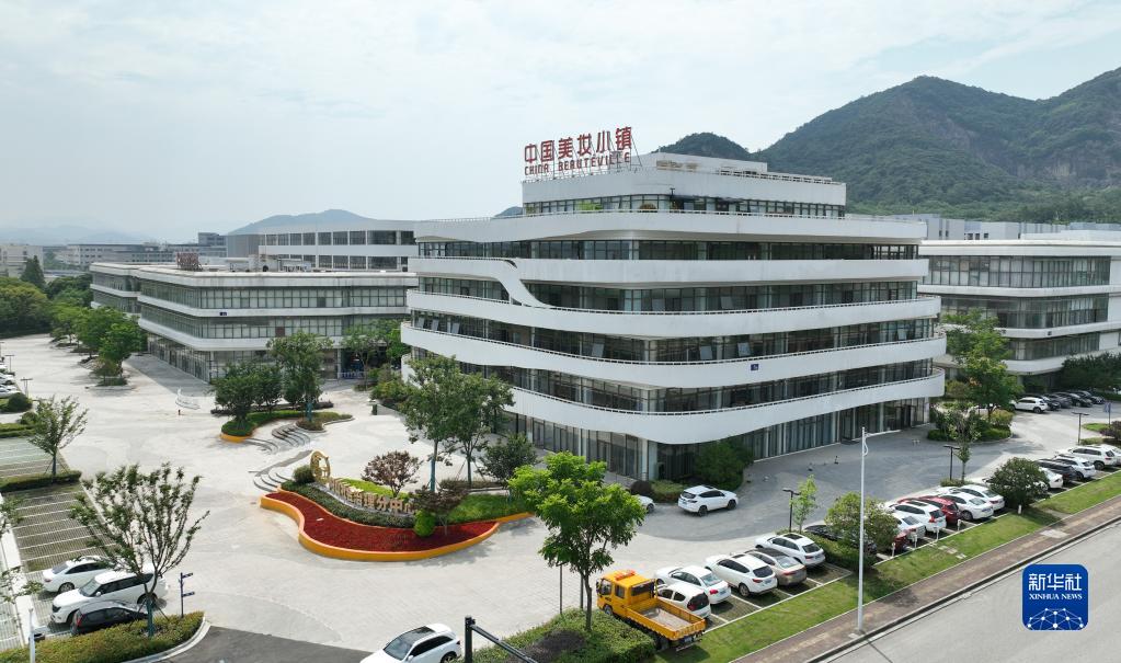 鳥(niǎo)瞰埭溪鎮美妝小鎮(無(wú)人機照片,6月21日攝)。