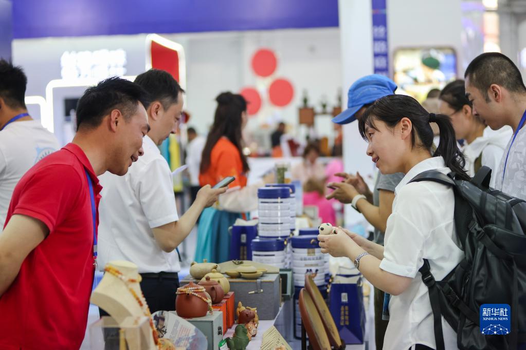 6月21日,參觀(guān)者在喀什國際會(huì )展中心選購商品。