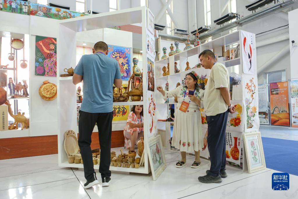 6月21日,參觀(guān)者在喀什國際會(huì )展中心參觀(guān)。