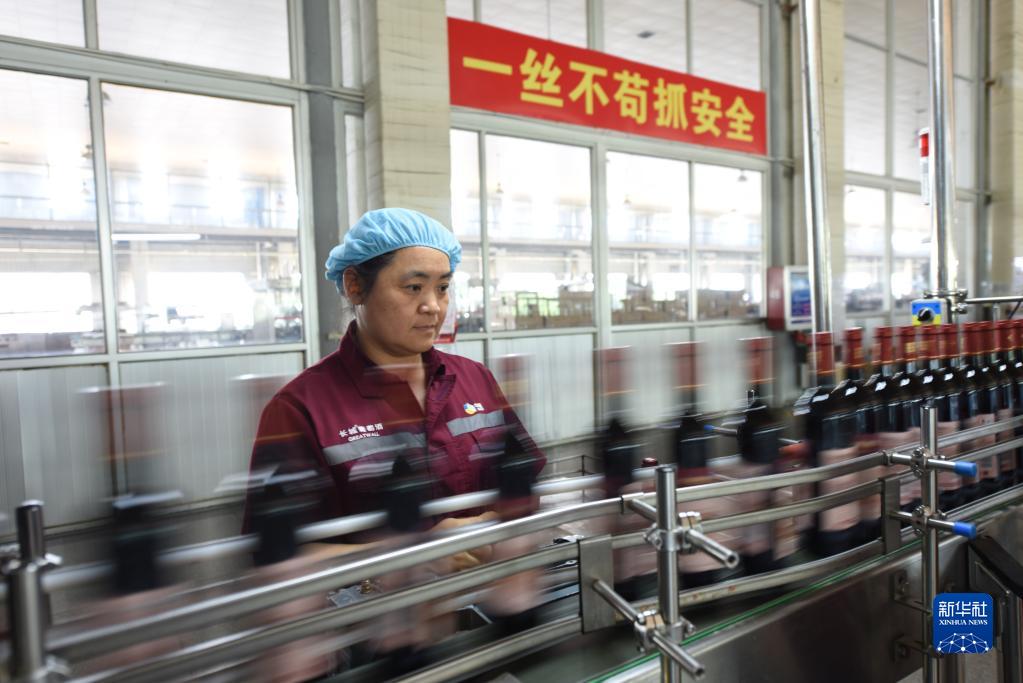 6月21日,在河北省懷來(lái)縣長(cháng)城葡萄酒廠(chǎng),一名工人在葡萄酒生產(chǎn)線(xiàn)上監控生產(chǎn)情況。