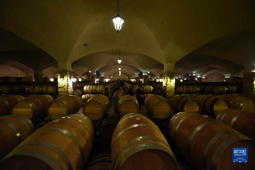 6月21日,在河北省懷來(lái)縣長(cháng)城桑干酒莊,游客在葡萄酒庫中參觀(guān)。