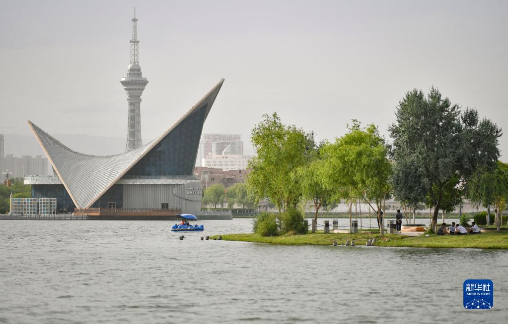 人們在新疆喀什市東湖公園游玩(6月14日攝)。新華社記者 胡虎虎 攝