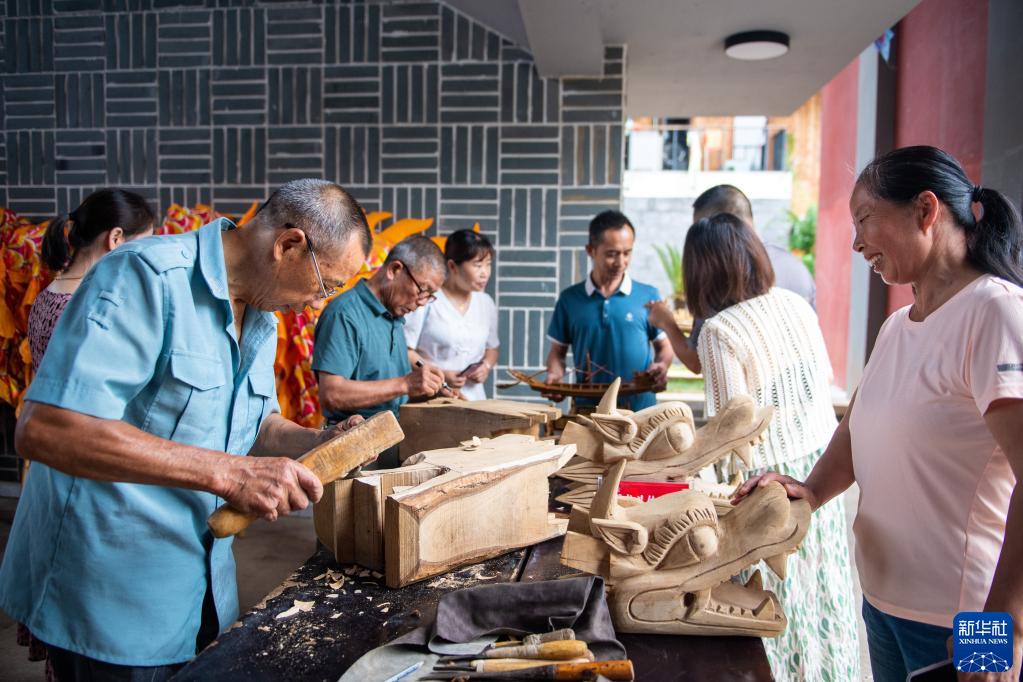 6月22日,手藝人在湖南省岳陽(yáng)市汨羅市屈子祠鎮新義村向游客展示雕龍頭技藝。
