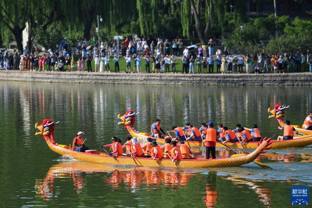 當日,2023龍潭端午文化節活動(dòng)在北京市東城區龍潭公園舉辦,包括龍舟比賽、文藝演出、展覽互動(dòng)體驗等。游客在這里共度端午節日,體驗多彩民俗。