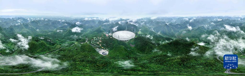 6月22日拍攝的“中國天眼”全景(維護保養期間拍攝,無(wú)人機照片)。