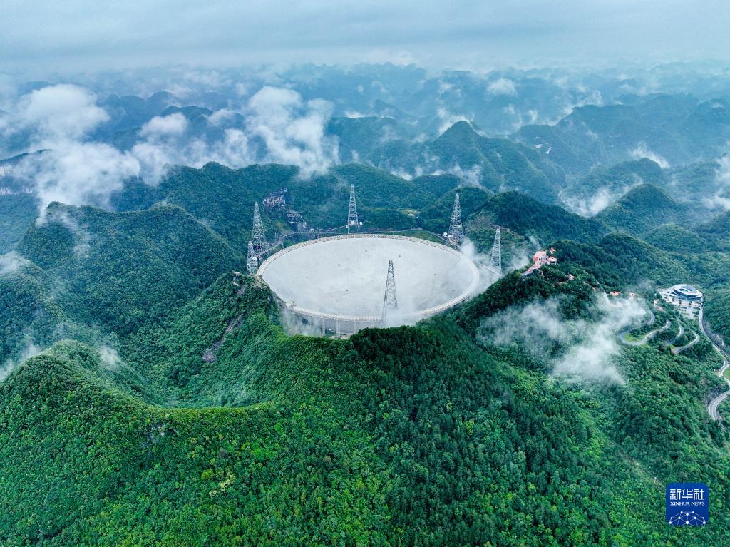 6月22日拍攝的“中國天眼”全景(維護保養期間拍攝,無(wú)人機照片)。