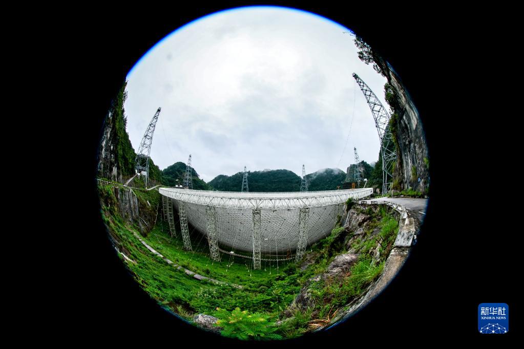 6月22日拍攝的“中國天眼”(維護保養期間魚(yú)眼鏡頭拍攝)。