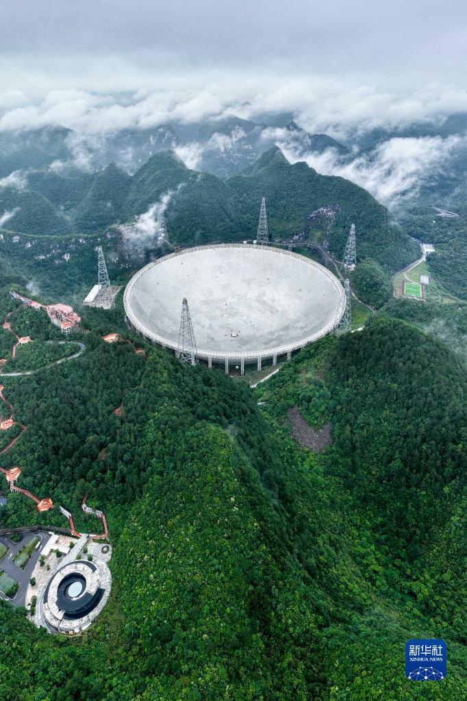 6月22日拍攝的“中國天眼”全景(維護保養期間拍攝,無(wú)人機照片)。