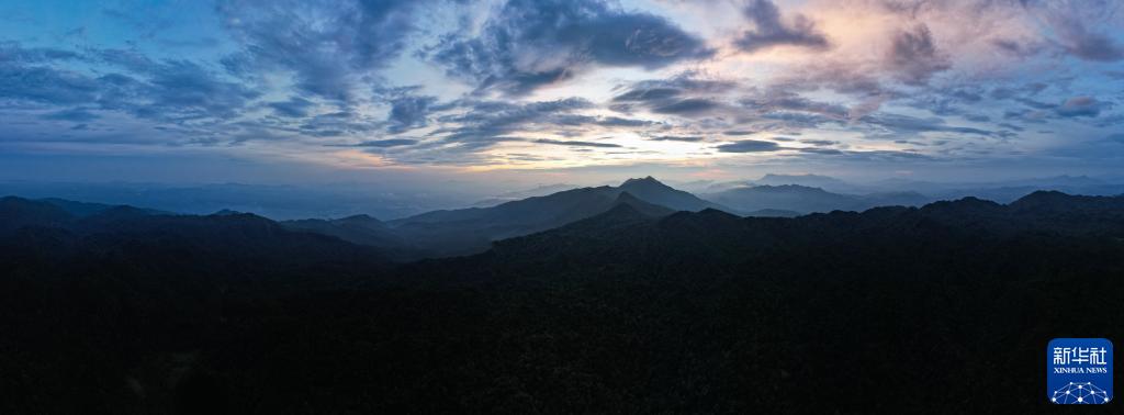 航拍夕陽(yáng)下的海南熱帶雨林國家公園吊羅山片區(6月14日攝)。
