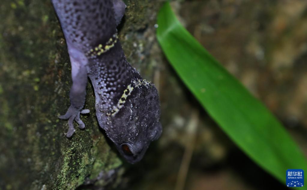 這是在海南熱帶雨林國家公園吊羅山片區拍攝的海南瞼虎(6月14日攝)。