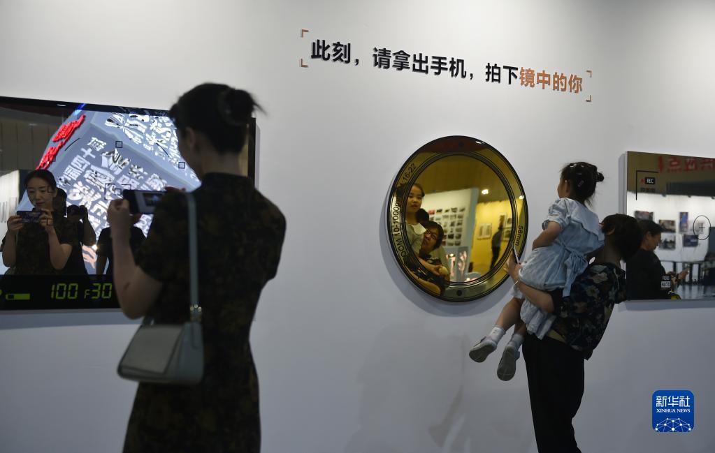 6月22日,參觀(guān)者在三門(mén)峽國際文博城內的展覽現場(chǎng)體驗互動(dòng)項目。