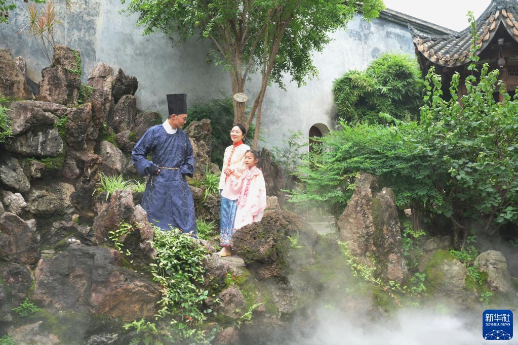 6月23日,游客在福州三坊七巷的古厝里游玩。
