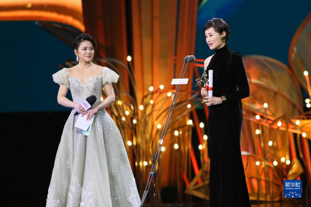 6月23日,演員吳越(右)憑借電視劇《縣委大院》榮獲白玉蘭最佳女主角獎。