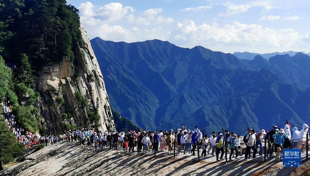 6月23日是端午小長(cháng)假的第二天,在西岳華山,游客在工作人員的引導下有序登山,領(lǐng)略“奇險天下第一山”風(fēng)光。