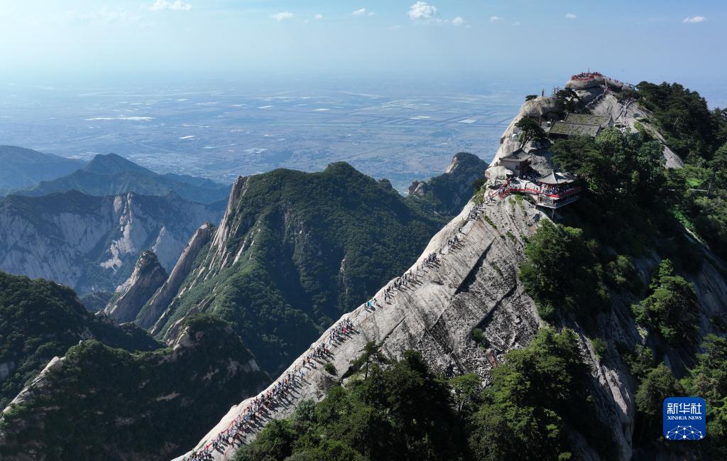 6月23日是端午小長(cháng)假的第二天,在西岳華山,游客在工作人員的引導下有序登山,領(lǐng)略“奇險天下第一山”風(fēng)光。