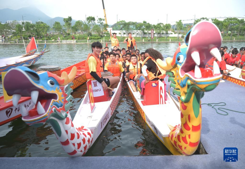 參加中華龍舟大賽(福建·福州站)的選手在賽前訓練中(2023年6月20日攝)。