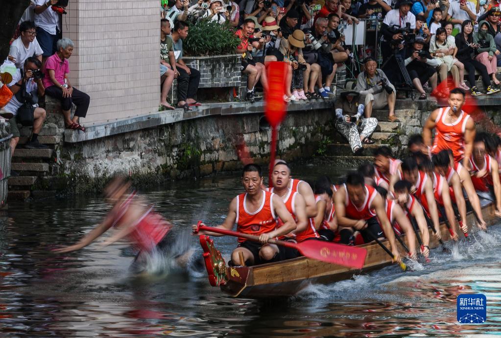 6月22日,龍船漂移過(guò)彎時(shí),一名“扒仔”(槳手)不慎被甩出龍船。
