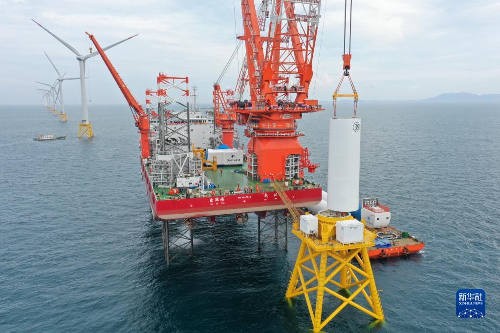 當日,在福建平潭外海,全球首臺16兆瓦大容量海上風(fēng)電機組開(kāi)始安裝。